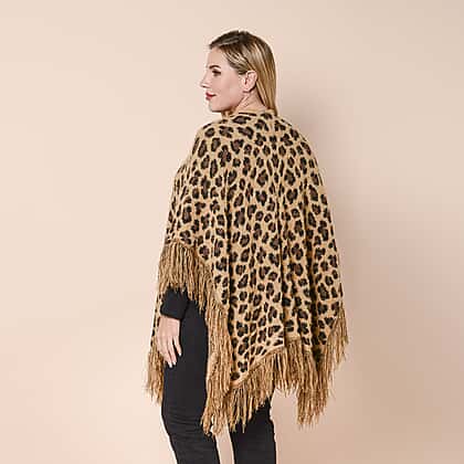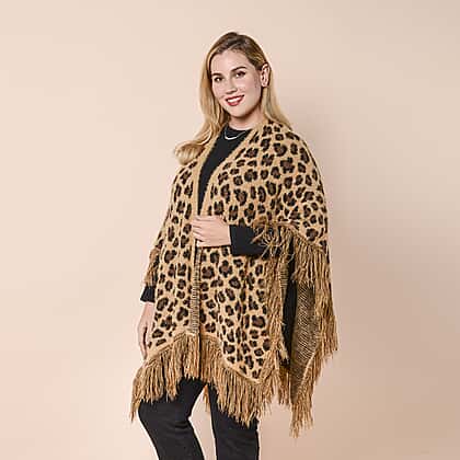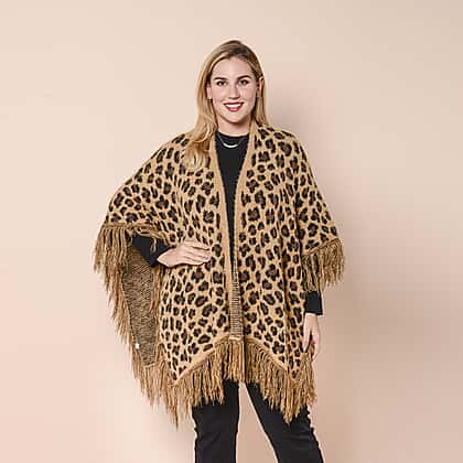 LA MAREY Leopard Print Kimono with Full Tassel in Brown