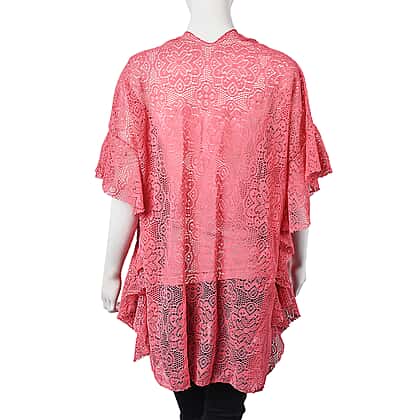 Pink Colour Floral Lace Kimono (Size 70x75 Cm)