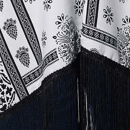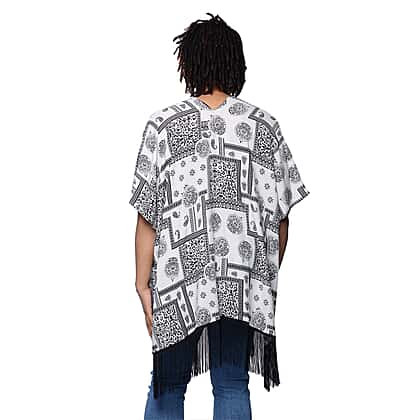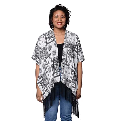 Printed Kimono with Tassel in Black and White (Size 90x70+15cm)