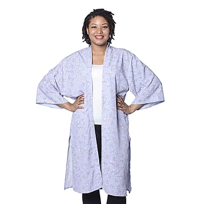 Sky Blue Floral Pattern Duster Long Kimono (Size upto 24)