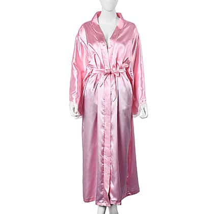 Solid Pink Colour Satin Feel Long Kimono (Size 65x130 Cm)
