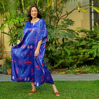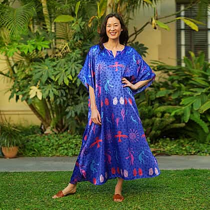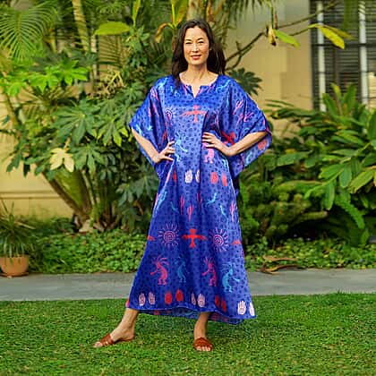 Winlar Blue and Multi Colour Tribal Pattern Long Kaftan (One Size)