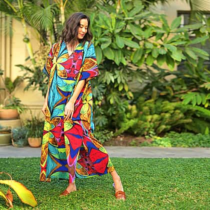 Winlar Multi Colour Floral Pattern Long V-Neck Kaftan (One Size)