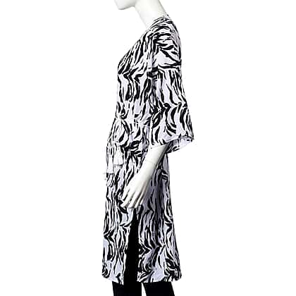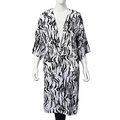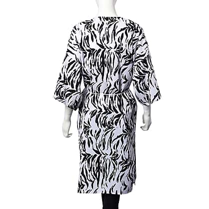 Zebra Print Midi Wrap Dress; 100% Polyester Fabric - Size S/M - Black and White