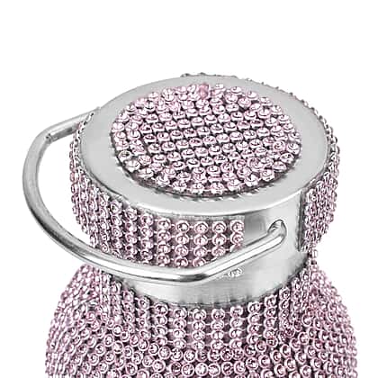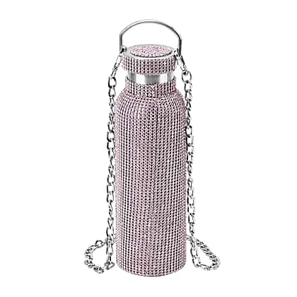 Crystal Studded Stainless Steel Water Bottle with Handle & Chain (20oz) - Pink
