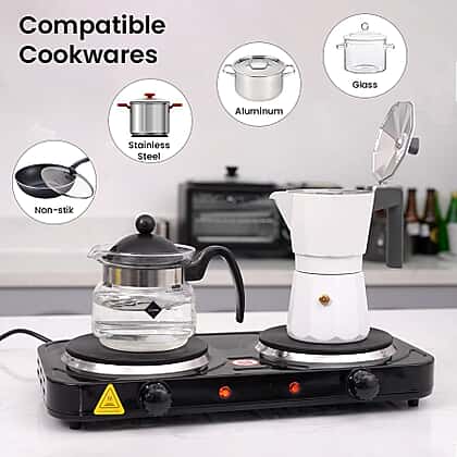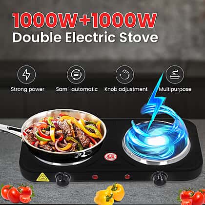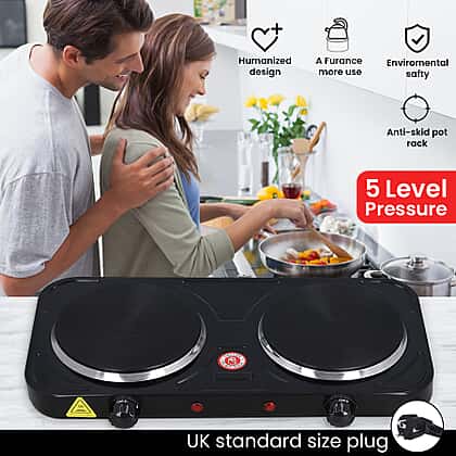 1000W Double Hot Plate for Cooking Includes 5 Level of Pressure and Powered by UK standard size plug Temperature Control - Black