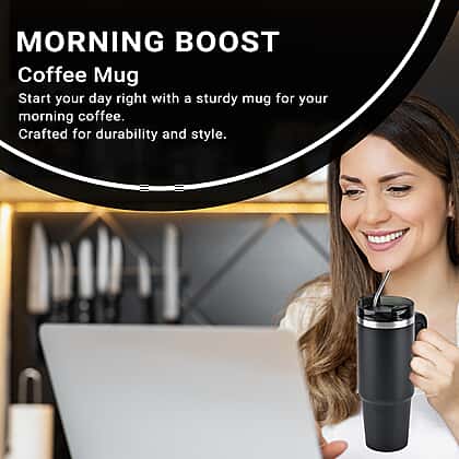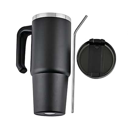 Hot or Cold Insulated Mug with Lid and Stainless Steel Straw - Black