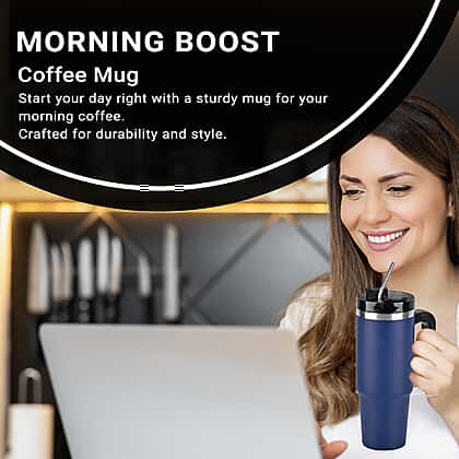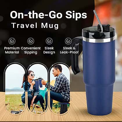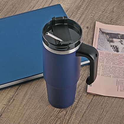 Hot or Cold Insulated Mug with Lid and Stainless Steel Straw - Navy