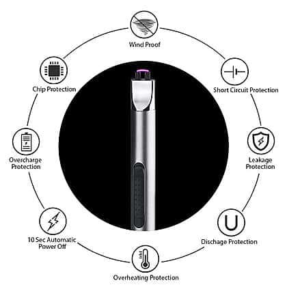 Electric rechargeable arc lighter with retractable head Electric Arc lighters are windproof and moisture-proof This electronic lighter has long neck to keep your hand away from dirty