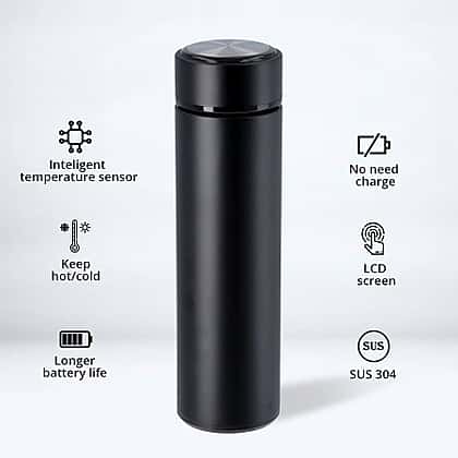 Hot & Cold Thermos Bottle with Top Temperature Display- Black