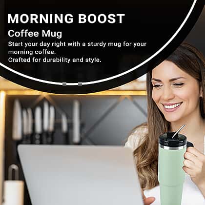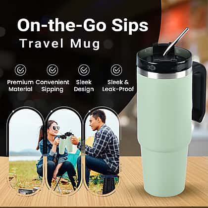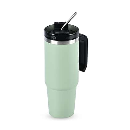 Hot or Cold Insulated Mug with Lid and Stainless Steel Straw - Green