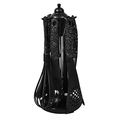 - The set includes spaghetti server, slotted spoon, ladle, slotted turner, turner, whisk, ladle