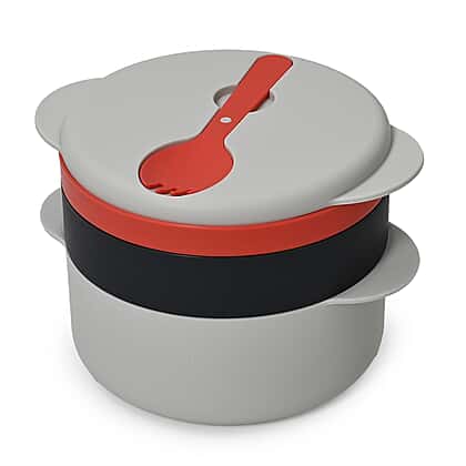 Microwave 3 Tier Vegetable Steamer with Spoon - CookEntire Meals - Dishwasher Safe - Grey & Orange