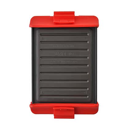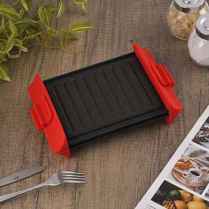 Microwave Long Steel Grill - 2 Plates - Browns, Grills, Crisps, Sizzles - Meals in Minutes (Size 22x14 cm) - Black & Red