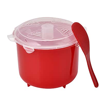 Microwave Rice Cooker with Rice Spoon (2.6L) - Red (Cook or Reheat with Built in Steam Vents and Lid)