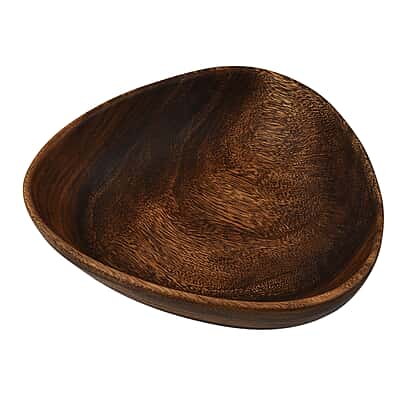 This handmade wood triangle bowl will be an elegant addition to your home. The design of this wooden bowl is achieved by expert wood artisans and is crafted from a single piece of wood. The interior of this wooden bowl is distinctively shaped like a spherical cap to allow an easy serving of popcorn or breakfast cereals. This wooden bowl can be used for multiple purposes like a decorative, a small plant pot or a regular serving bowl. This lightweight round curved bowl is supposed to be hand washed only. The edges are smoothened for easy handling and create a distinctive minimalist design of the square bowl.