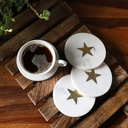 - HANDCRAFTED: Meticulously handcrafted, these round marble coasters with star inlay creates a gorgeous modern touch