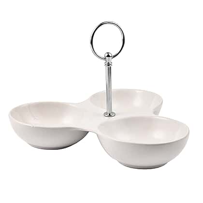 Introducing the ultimate serving solution - the Serving Dish with 3 Sections. Crafted with premium, food-safe materials, this stylish dish allows you to elegantly present a variety of appetisers, snacks, or condiments in one place. Perfect for hosting gatherings or family dinners, its three sections keep flavours separate and enhance your presentation. This versatile and practical serving dish will elevate your dining experience and impress your guests.