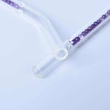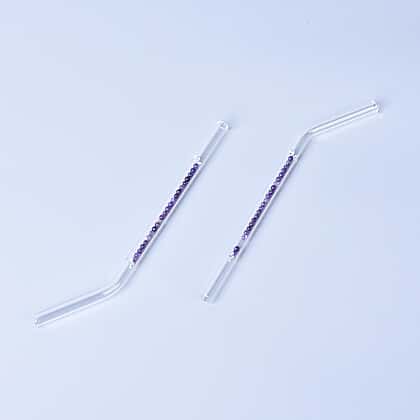 Set of 2 - Amethyst and Natural Gem Crystal Drinking Straw with Gift Box (Size 18, 2.9x0.35inch) - Transparent