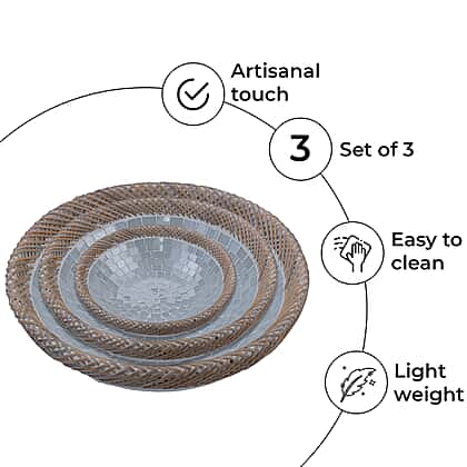 Set of 3 Mosaic Terracotta Round plate flower of life motif