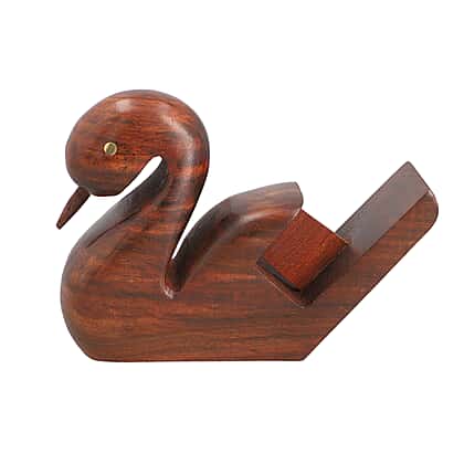 Wooden Swan Coaster Set with 4 Feather Shaped Coasters and Bird Holder Natural Brown