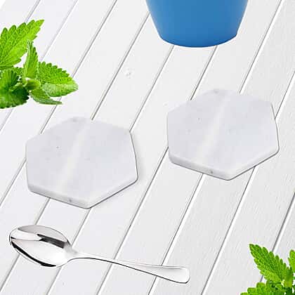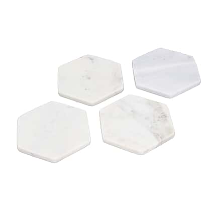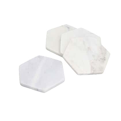 Set of 4 - Hexagon Shaped Marble Coasters (Size 10x10cm) - White