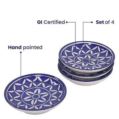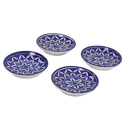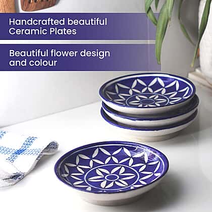 Set of 4 Hand Painted Ceramic Plates - Blue