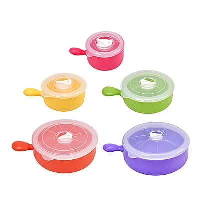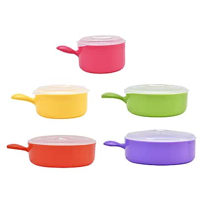 Set of 5 - Microwaveable Fresh Lunch Box with Leak Proof Lid - Multi Colour. Soup, Snacks, Noodles, Pasta, Rice, Salad Bowl