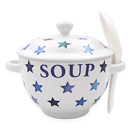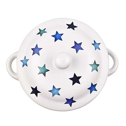 Star Pattern Soup Bowl with Ceramic Spoon (Size 15x15x12 cm) - White & Blue
