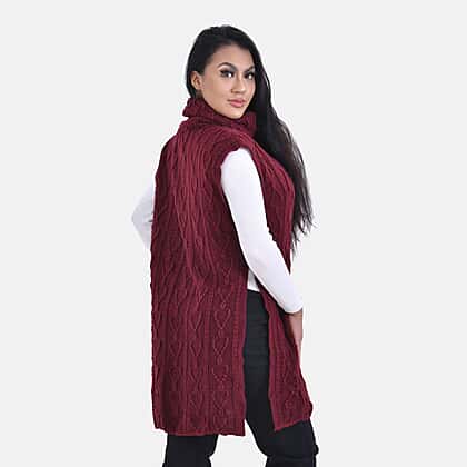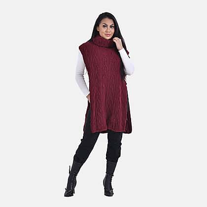 Knitted Rolled Neck Tabard One Size - Wine Red