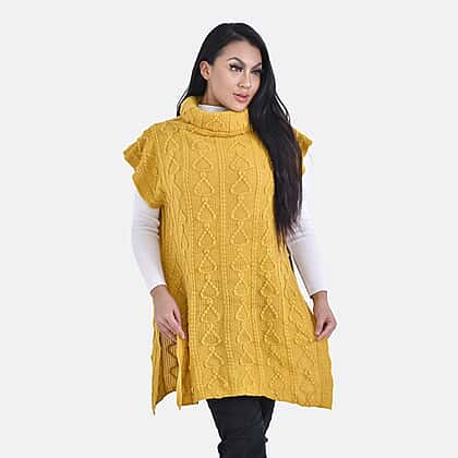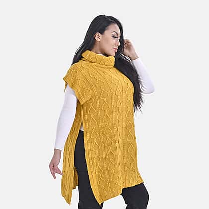 Knitted Rolled Neck Tabard (One Size) - Yellow