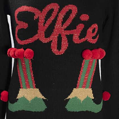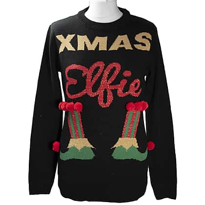 Knitted Sequin Xmas Elf Ladies Jumper (Size S/ 8-10) - Black