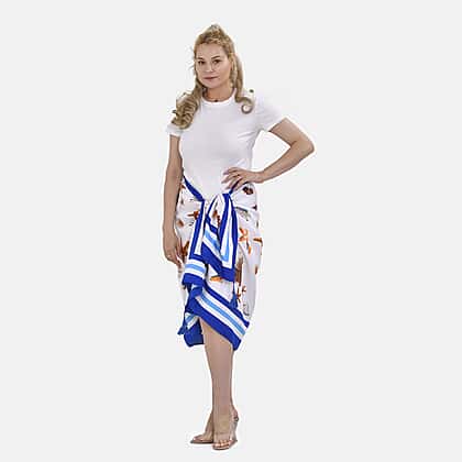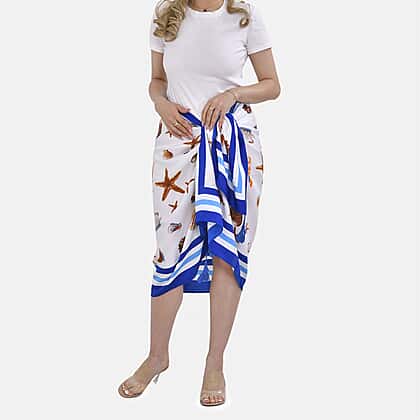 Closeout Deal Starfish Printed Cloud Brocade Long sarongs (Size 180x88 cm) - White