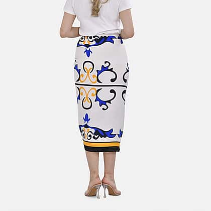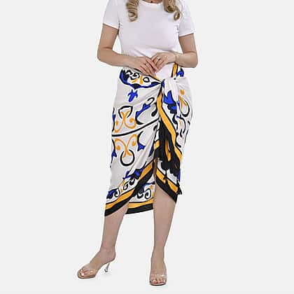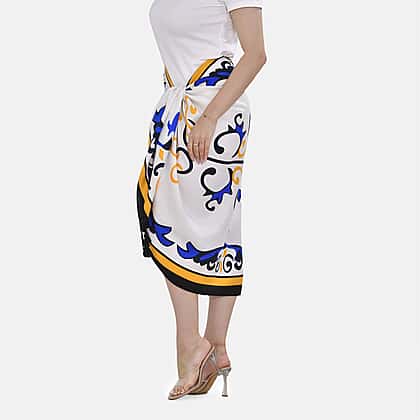 Wrap yourself in the elegance of the printed cloud brocade long scarf, a luxurious accessory that effortlessly blends comfort and style. Featuring a delicate pattern of blue and yellow flowers on a white base, this scarf is perfect for adding a touch of sophistication to any outfit. Made from 100% viscose, the scarf offers a soft, lightweight feel, making it ideal for year-round wear. The intricate design captures the essence of serene cloud formations, adding an artistic flair to your look. The long scarf allows for versatile styling options, ensuring it becomes a cherished addition to your wardrobe.