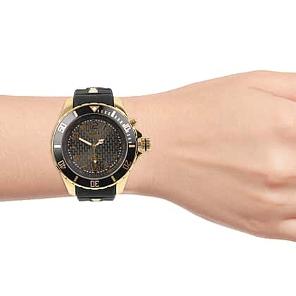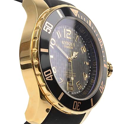 KYBOE Japanese Movement 100M Water Resistant Gold Shade LED Watch in Stainless Steel with Rotating Bezel and Black Strap - 55MM