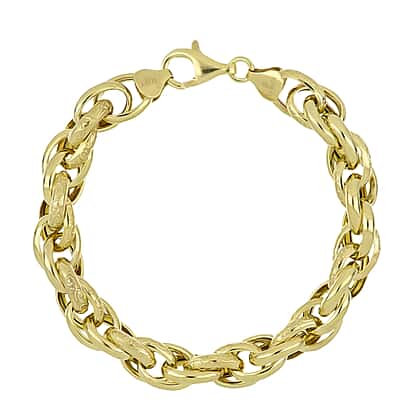 La Bella Handmade Chunky Prince of Wales Bracelet (Size 8) with Lobster Clasp in Yellow Gold Plated Sterling Silver, Silver Wt. 18.00 Gms.