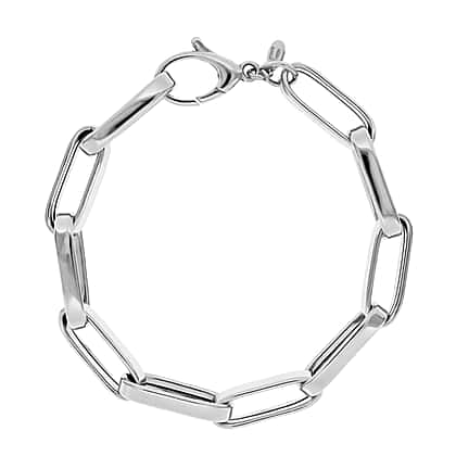 La Bella Broad Paperclip Bracelet (Size 8) with Lobster Clasp in Platinum Overlay Sterling Silver, Silver Wt. 15.00 Gms.