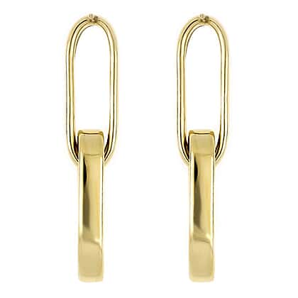 These contemporary earrings from the LA BELLA collection feature a bold paperclip design, offering a sleek and minimalist aesthetic. The yellow gold plating over sterling silver provides a radiant and timeless finish, making them a versatile addition to your jewellery collection. Designed with a reliable push-back closure, these earrings ensure comfortable and secure wear, effortlessly complementing a variety of styles and settings.