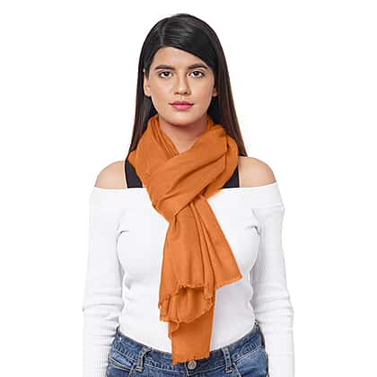 This winter, wrap yourself in the comfortable warmth of La Marey 100% cashmere pashmina scarf. Radiating timeless elegance, pashmina is known for its fine weave and incredible softness. Not only is the scarf soft on the skin with a gossamer texture, but it also boasts unmatched aesthetic value. The orange scarf makes a versatile accessory, offering a range of styling options.