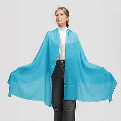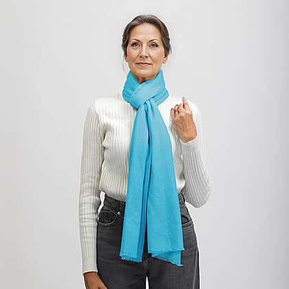 La Marey 100% Cashmere Solid Wool Scarf with Gift Box (Size 190x70 cm) - Turquoise