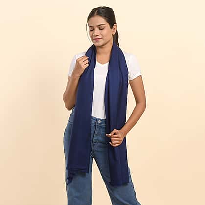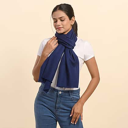 LA MAREY 100% Cashmere Woollen Scarf (Size - 190x70 Cm) - Navy Blue