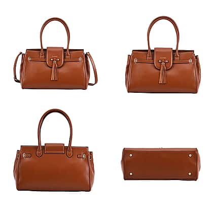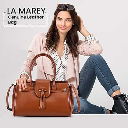 LA MAREY 100% Genuine Leather Convertible Jenny Bag with Detachable Long Strap (Size 37x24x17 Cm) -Tan