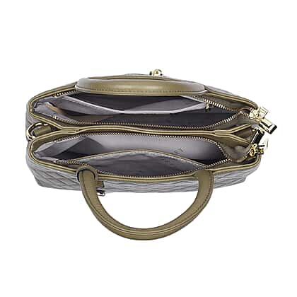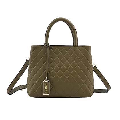 La Marey 100% Genuine Leather Diamond Pattern Convertible Bag with Shoulder Strap - Green