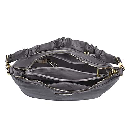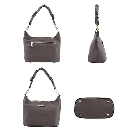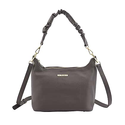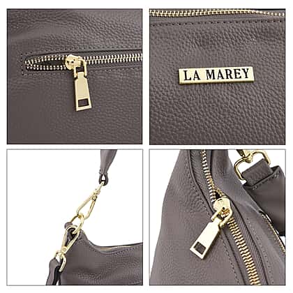 La Marey 100% Genuine Leather Hobo Bag with Detachable Strap - Grey