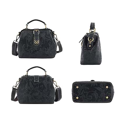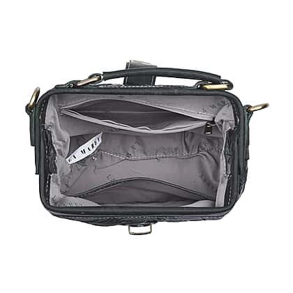 La Marey 100% Genuine Leather Leaves Embossed Convertible Bag with Shoulder Strap - Green