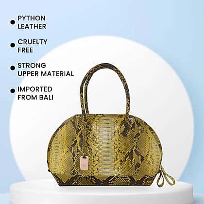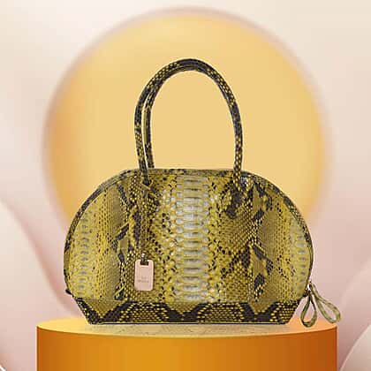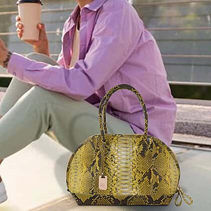 LA MAREY 100% Genuine Python Leather Snake Skin Pattern Tote Bag with Zipper Closure - Yellow