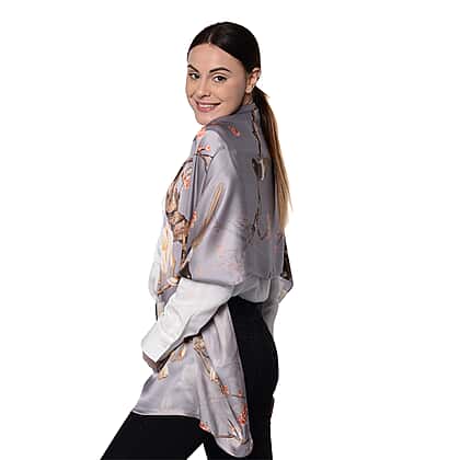 LA MAREY Mulberry Silk Printed Scarf - Grey