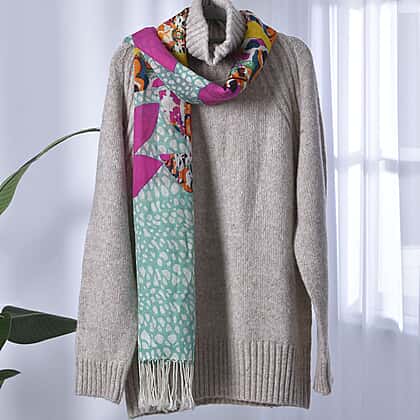 Drape yourself with this soft and stylish merino wool wave scarf by La Marey. This scarf features tassel detailing at the ends and bright, colourful wavy prints to give it a unique touch. It is perfect for that time of the month when the winds start getting cooler. You can wear it around your neck or pair it with jeans, jackets or cardigans.