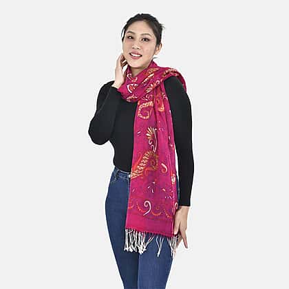 La Marey 100% Merino Wool Paisley Print Scarf (Size 175x65 cm) - Plum Red & Multi