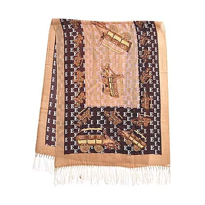 La Marey 100% Merino Wool Horse Cart Pattern Scarf - Brown